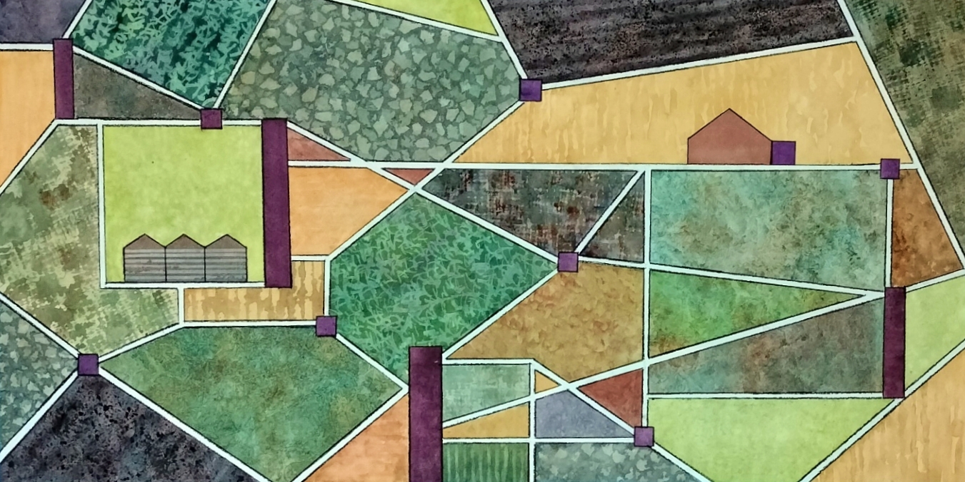 Lay of the Land, watercolor with charcoal, 2024