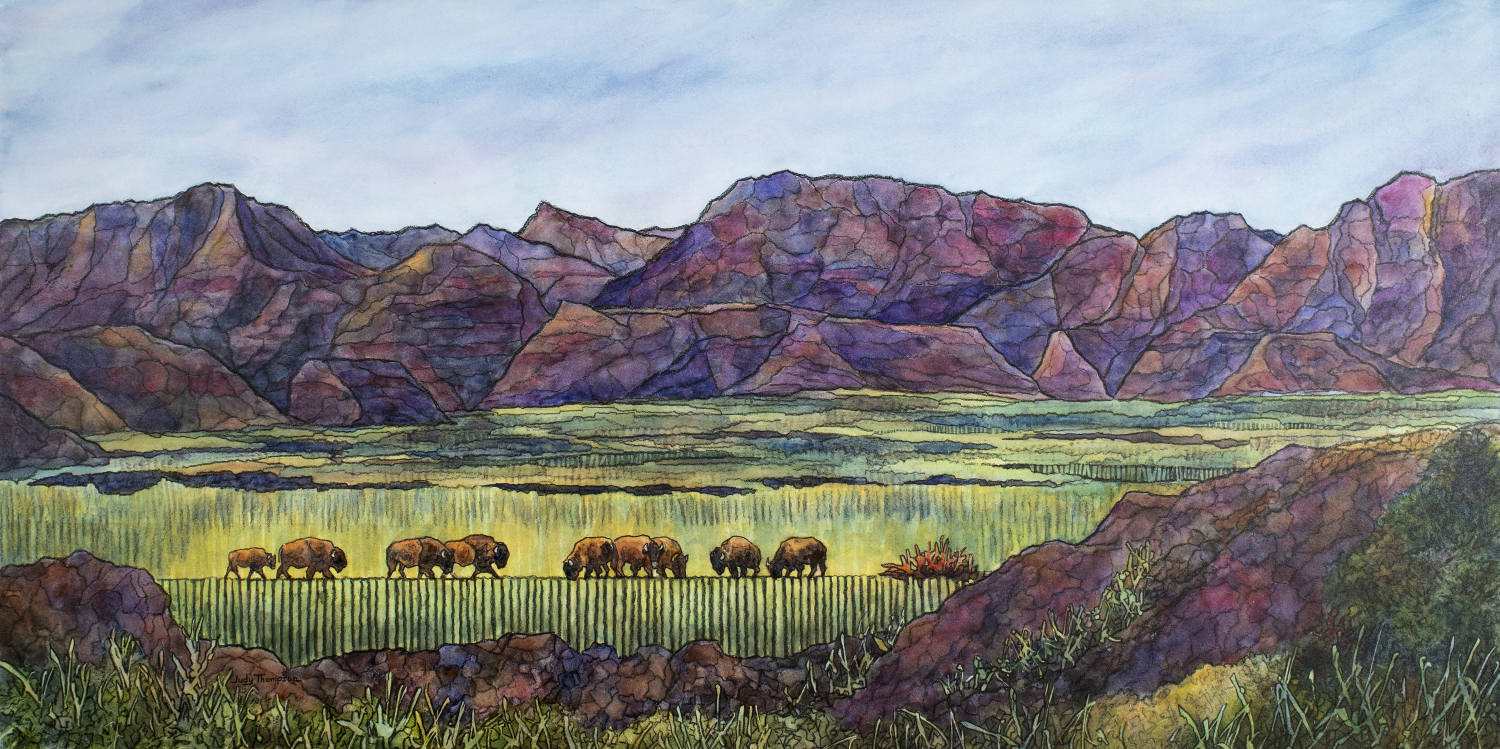 Judy Thompson is a watercolor artist whose work explores the landscapes and histories of the Great Plains. Originally from the Chicago area, she has lived in Northwest Iowa for over forty years.Her work has been shaped by residencies at Homestead National Historical Park and Badlands National Park. Her Homestead Series is part of the permanent collection of the National Park Service. She also created cover artwork for the Pioneer Girl series published by the South Dakota Historical Society Press.Her work is exhibited regionally and nationally and is held in public and private collections. She is a Signature Member of the Iowa Watercolor Society and an Associate Member of Women Artists of the West.