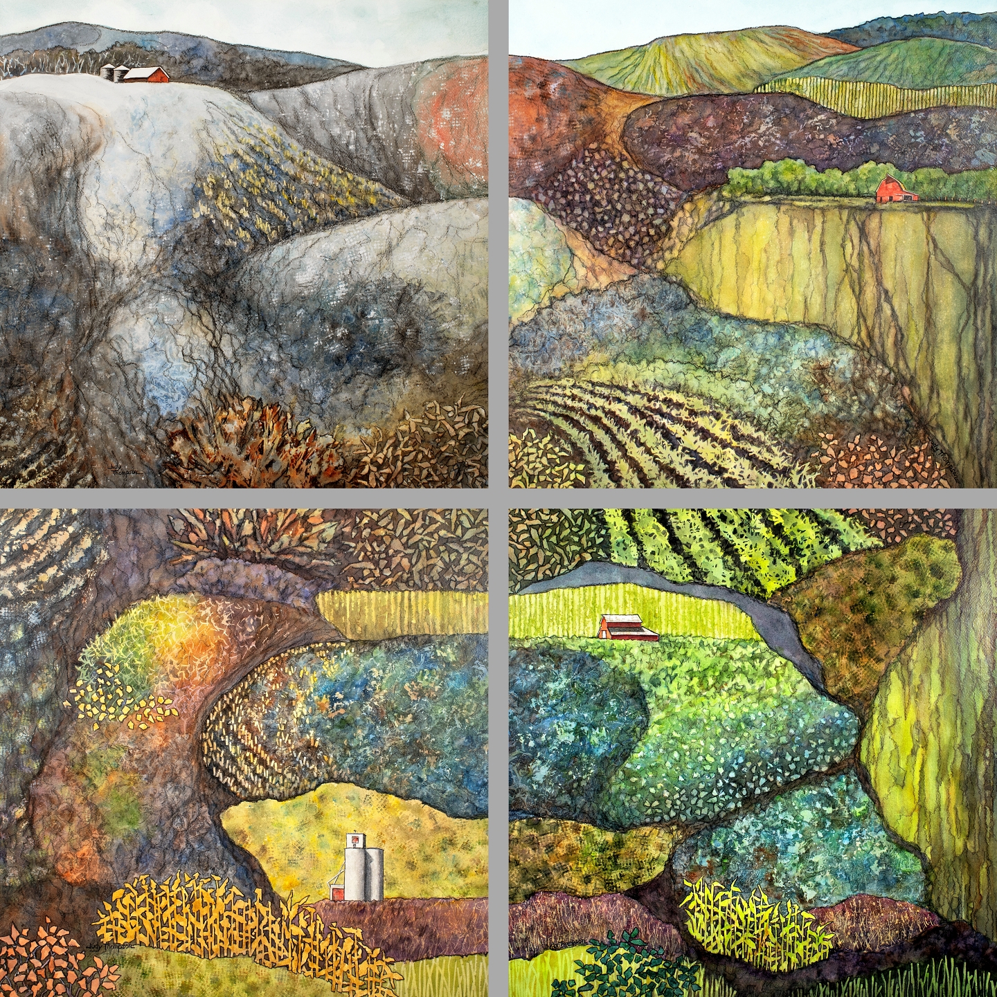 Renewal: Rest, Revive, Flourish, Glean, watercolor with charcoal, 2025