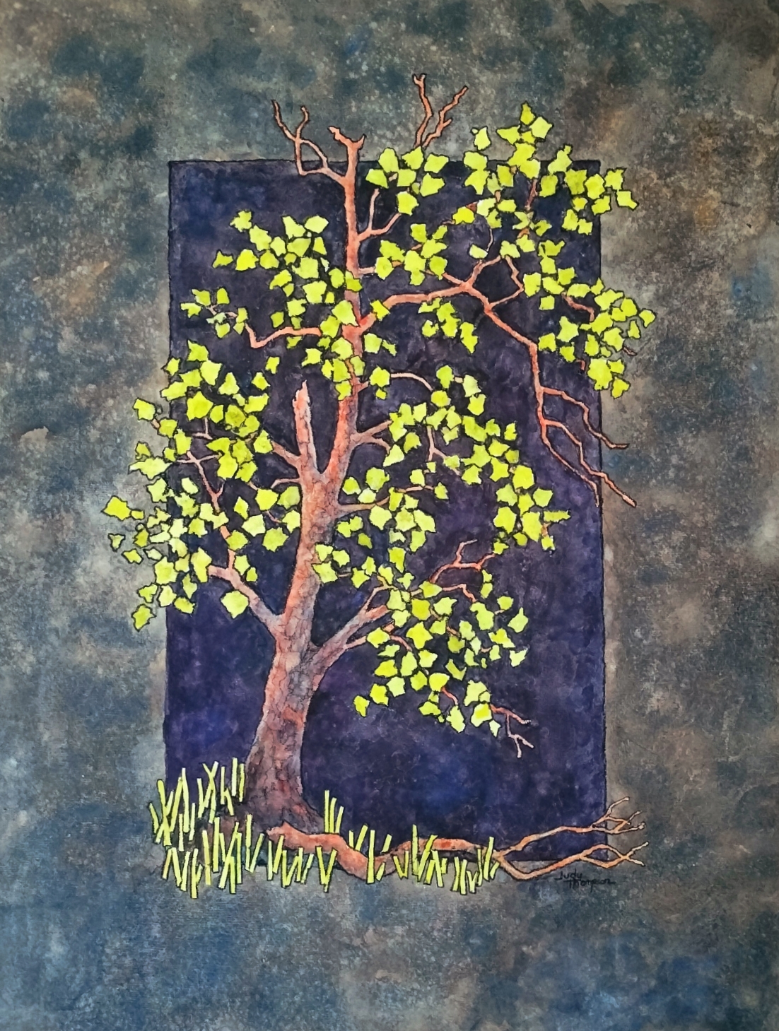 Lone Tree, watercolor with charcoal, 2021